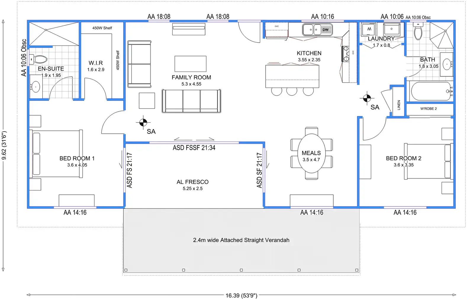 A roomy two-bedroom home with a central living area and alfresco. It is a generously equipped smaller home for those who only require two bedrooms but do not wish to compromise on comfort.