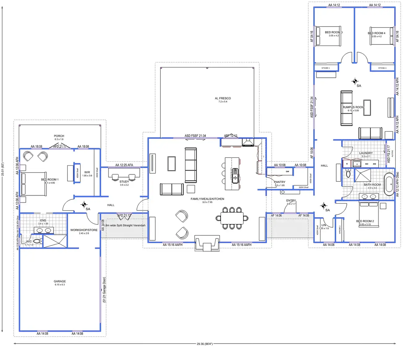 A modern interpretation of a traditional Australian home. The separation of the pavilions harks back to early Australian colonial architecture, yet the design is as modern as today. The clear separation of living areas exemplifies Pavilion design.