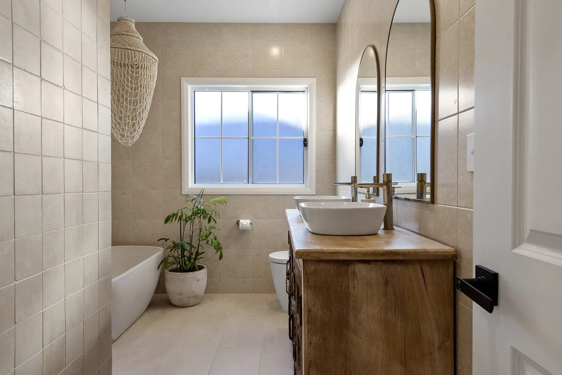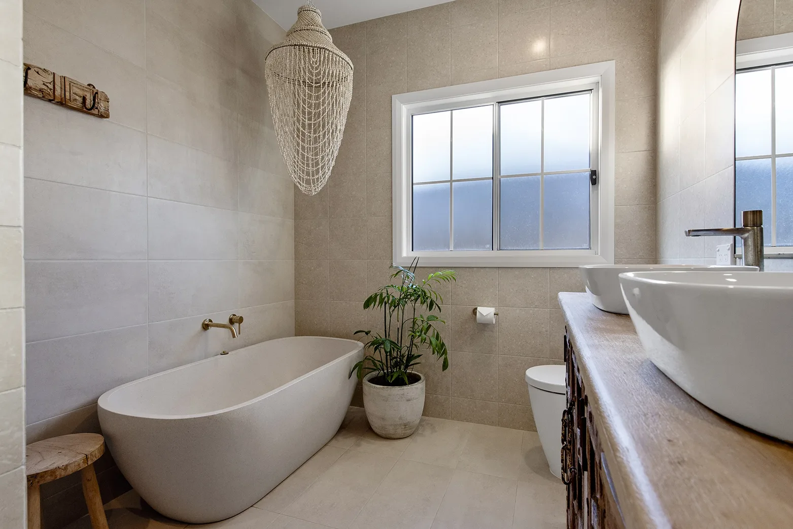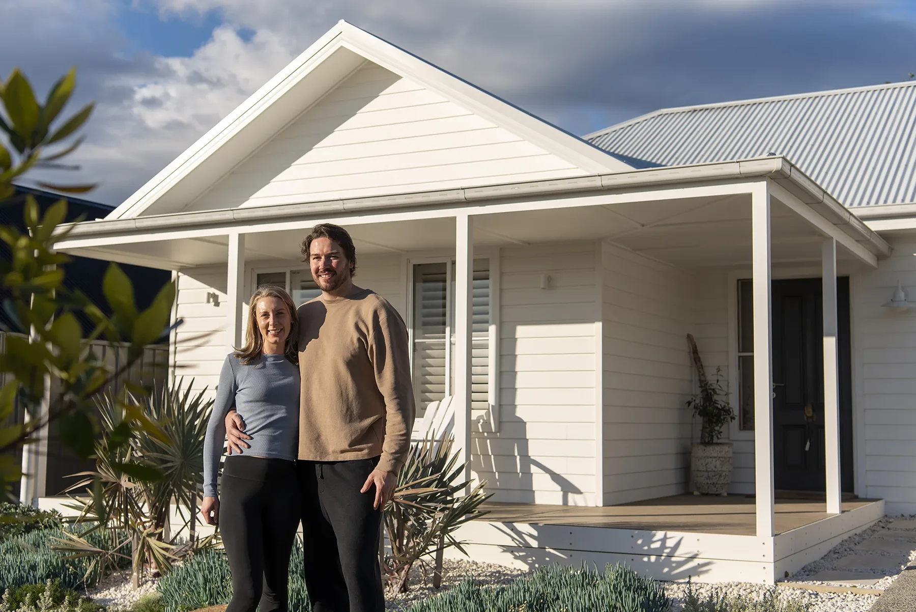 Initially, the couple loved the layout of the Camden, but it didn’t suit their narrow block. They also preferred the facades of the Kiama and Fitzroy for their beachside setting. So, Michael Christie helped blend all three, switching the floor plan to run lengthways instead of sideways. “The Camden was our pick, but the block just couldn’t accommodate it,” says Earl. “So, Michael helped us get the feel of the Camden, but for our block.”