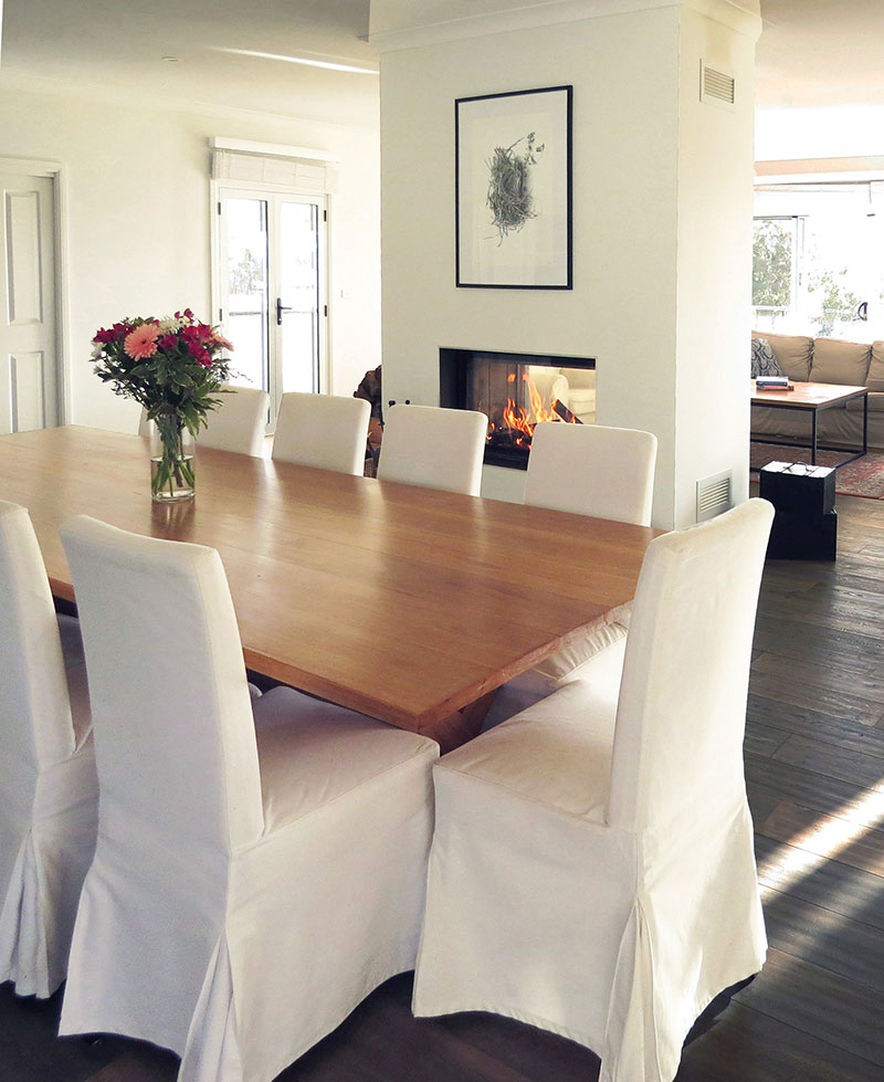 Oberon can be cold in the wintertime, so heating and insulation were important considerations. The couple put in a double-sided fireplace which acts as a divider between the living and dining areas, and also provides ducted heating around the home through the ceiling.