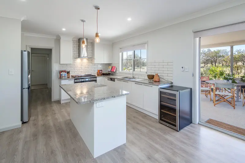 The couple opted for the Elizabeth design. Michael Christie of Paal helped them with modifications. They added storage cupboards, boosted the size of the laundry and bathroom, and in fact enlarged the entire house. “Michael was fantastic throughout the process,” Lindy said.
