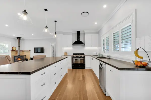 Housing consultant Doug Young of Paal’s Emu Plains showroom was happy to help the couple modify the plans. The rooms are now all larger, and the workshop and study each became a bedroom with an ensuite – creating a total of six bedrooms and five bathrooms.