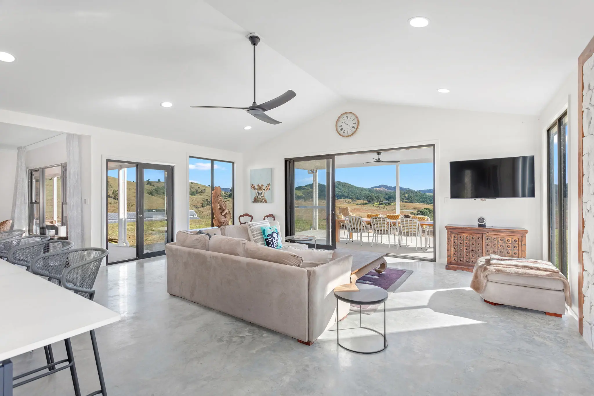 The build took a year, and the couple was thrilled with result, especially as they could adapt the plan to suit their vision and include so many of their own ideas such as burnished concrete floors throughout. “We’re very happy, it’s worked out really well,” says Greg.